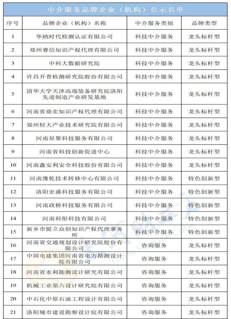 5月30日,河南省發(fā)展改革委公示了100家省級中介服務品牌企業(yè)(機構(gòu))名單。