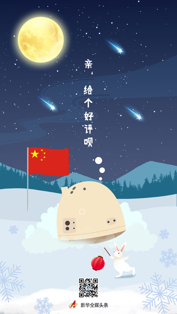 ——“驚天一落扣人心弦。12123時(shí)11分,嫦娥五號(hào)穩(wěn)穩(wěn)降落在月球正面西經(jīng)51.8度、北緯43.1度附近的預(yù)選著陸區(qū),月球風(fēng)暴洋成為中國探月新地標(biāo)。