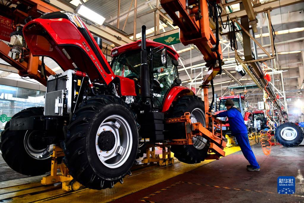 2月15日,在山東五征集團(tuán)山拖農(nóng)業(yè)裝備有限公司,工人在生產(chǎn)線上裝配農(nóng)用拖拉機(jī)。新華社記者 郭緒雷 攝