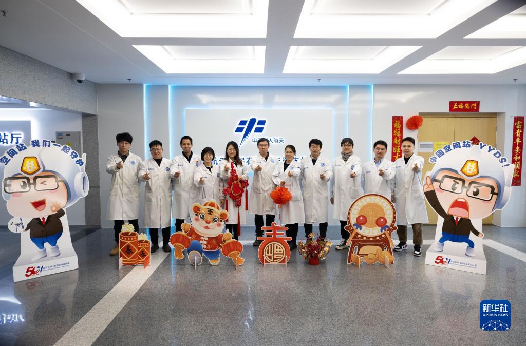 1月30日,在航天科技集團(tuán)五院在軌航天器支持中心數(shù)字空間站外,空間站任務(wù)飛控試驗(yàn)隊(duì)科研人員合影留念。新華社記者 金立旺 攝