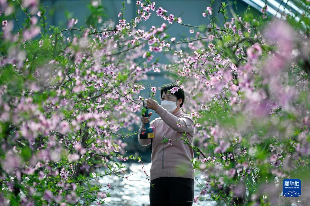 2月15日,寧夏青銅峽市大壩鎮(zhèn)韋橋村村民李文會(huì)在日光溫室為桃樹疏果、剪枝。新華社記者 王鵬 攝