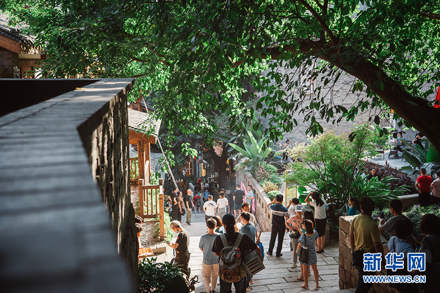 重慶“十八梯”傳統(tǒng)風(fēng)貌區(qū)內(nèi)游人如織。(2021年9月30日攝)新華網(wǎng) 耿駿宇 攝