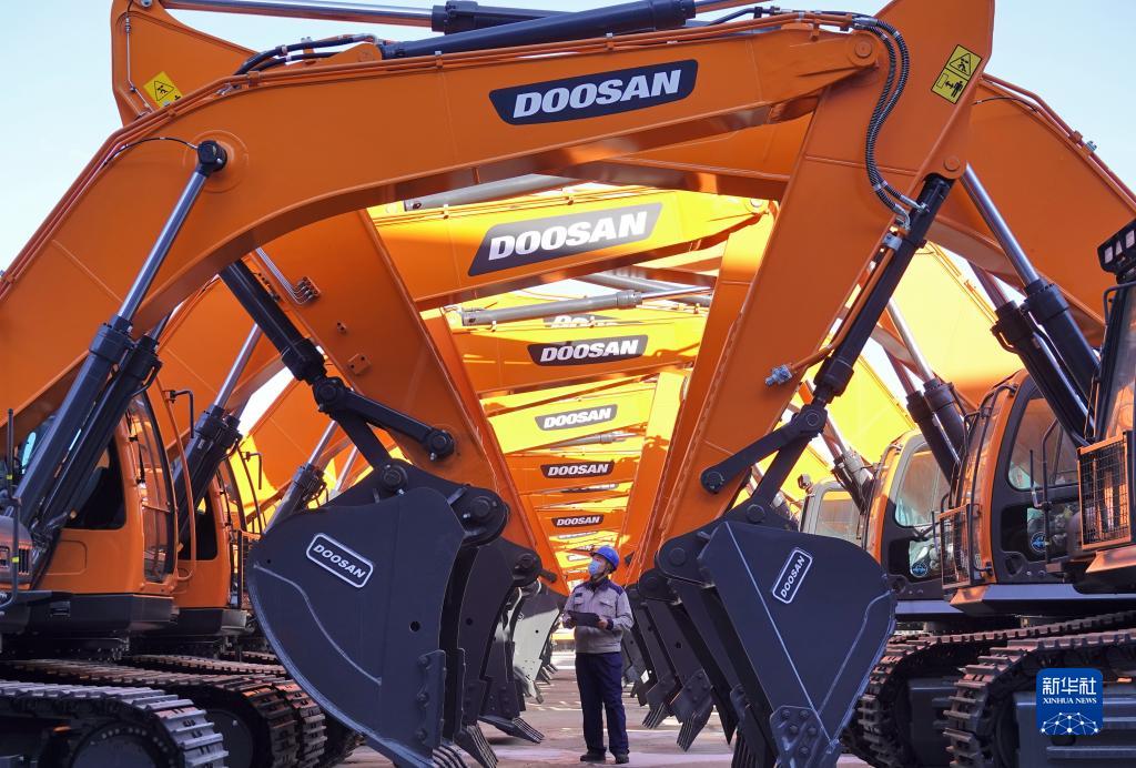 工作人員在山東煙臺開發(fā)區(qū)一家工程機(jī)械有限公司檢查出廠機(jī)械設(shè)備(1月17日攝)。新華社發(fā)(唐克 攝)