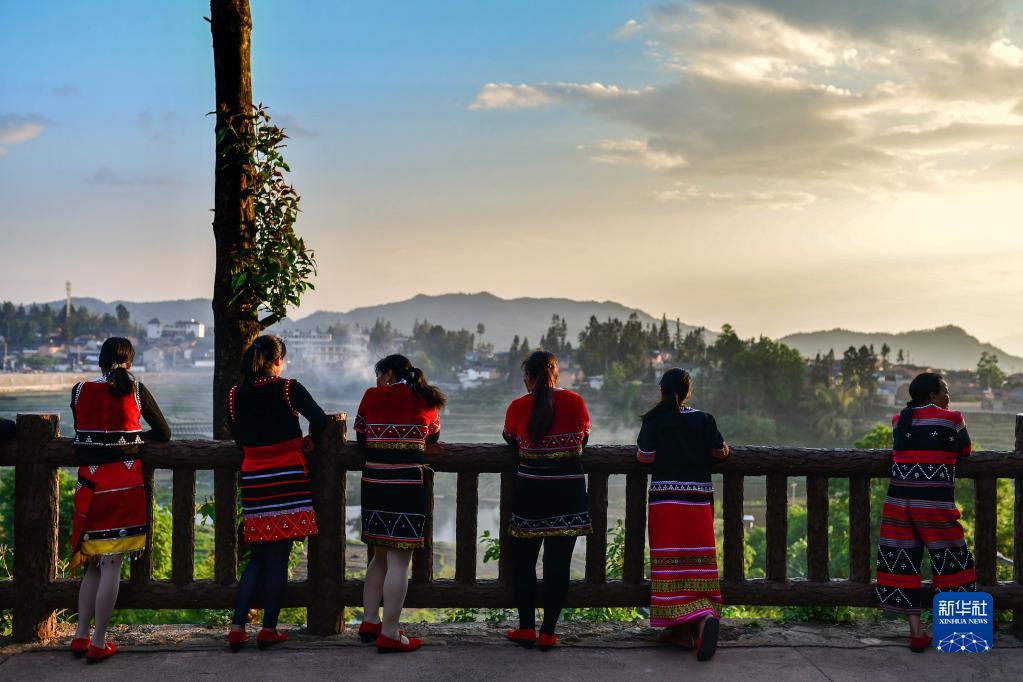 云南省騰沖市清水鄉(xiāng)三家村中寨司莫拉佤族村村民在廣場上休息(2020年5月15日攝)。新華社記者 胡超 攝