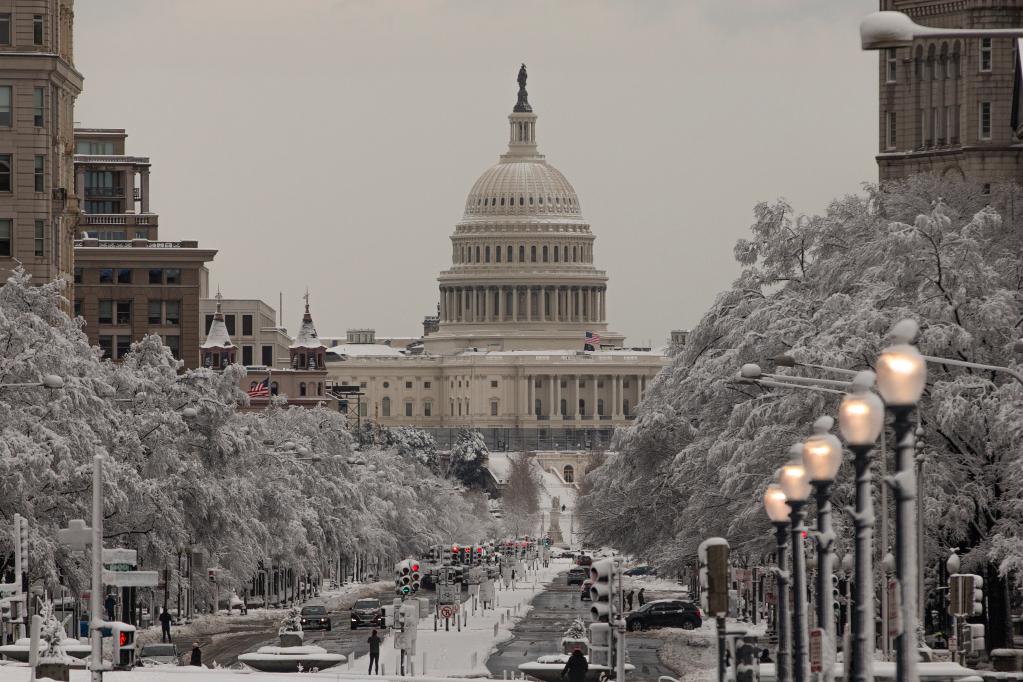 這是1月3日在美國首都華盛頓拍攝的雪后的國會大廈。新華社發(fā)(阿倫攝)