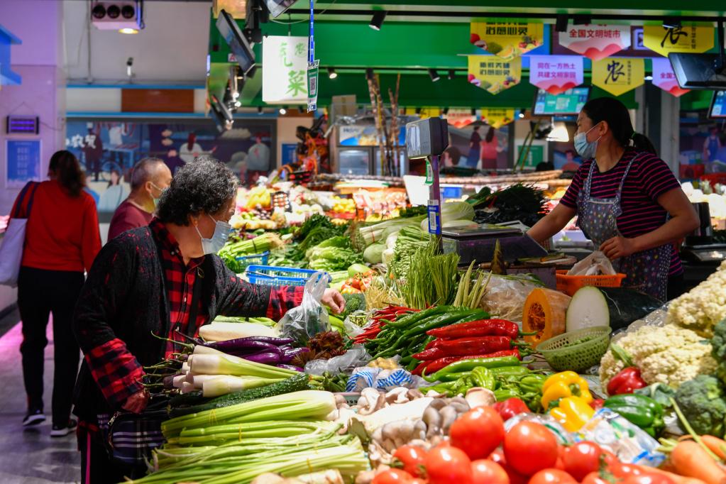 3月30日,居民在深圳市福田區(qū)華榮凈菜市場(chǎng)里買菜。新華社發(fā)(儲(chǔ)焱 攝)