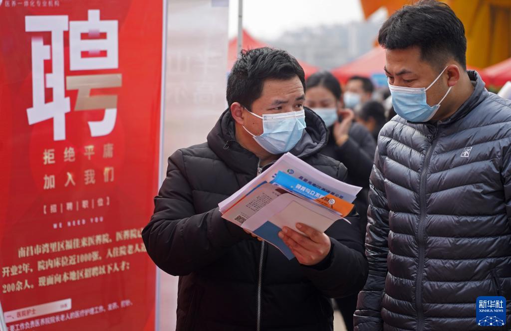 2月25日,江西省南昌市灣里管理局開展“春風(fēng)行動(dòng)”線下招聘活動(dòng)。這是求職者在招聘會現(xiàn)場交流。新華社記者 萬象 攝