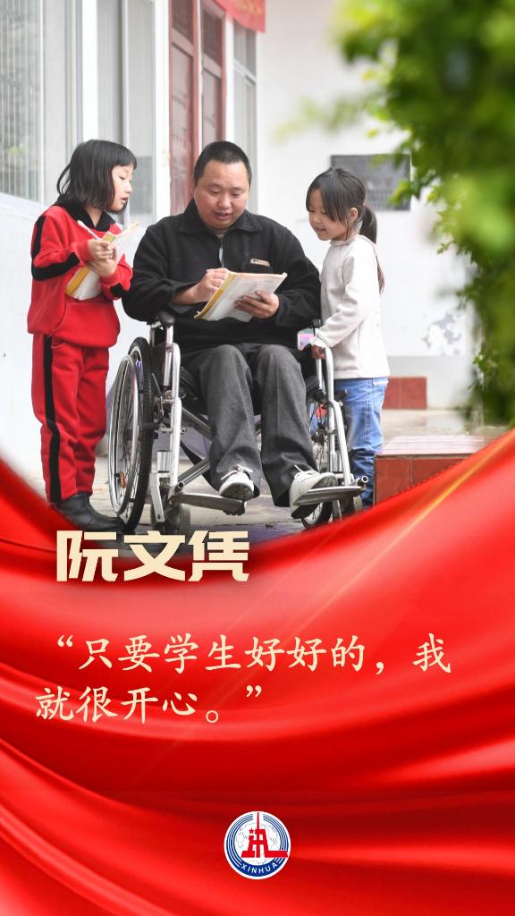每天,太陽初升,他坐著輪椅把校門打開,等待孩子們歡呼雀躍來到學(xué)校;夕陽西下,他坐在輪椅上和學(xué)生道別,目送孩子們唱唱跳跳回家去。