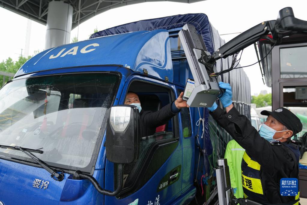 在安徽合肥百大周谷堆大興農(nóng)產(chǎn)品物流園,司機(jī)在智能化門禁系統(tǒng)上掃碼進(jìn)入(4月13日攝)。該園建立集測溫、核驗(yàn)安康碼、數(shù)據(jù)收集等功能的智能化門禁系統(tǒng),進(jìn)場駕乘人員不用下車即可快速核驗(yàn),實(shí)現(xiàn)防疫測溫智能化、人車追溯數(shù)據(jù)化。新華社記者杜宇攝