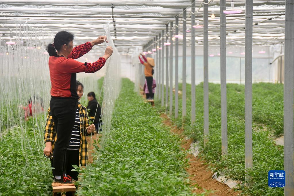 在湖南省湘陰縣樟樹鎮(zhèn),椒農對樟樹港辣椒進行管護(4月13日攝)。新華社記者 周勉 攝