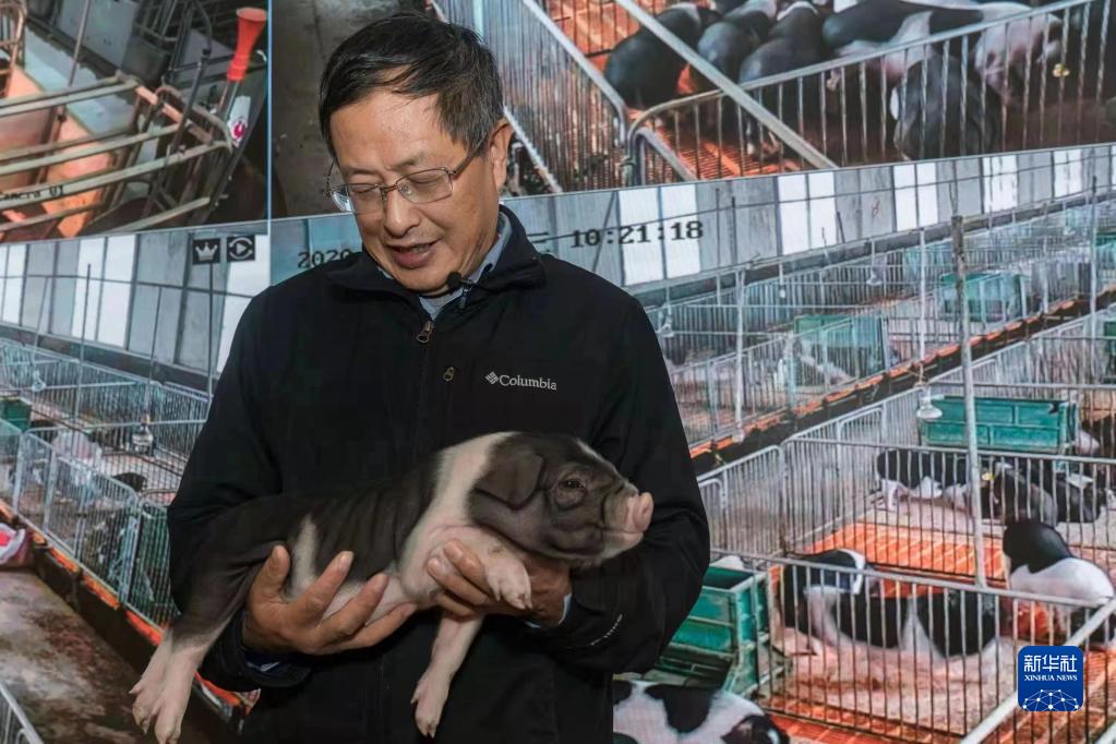 在寧鄉(xiāng)國家現(xiàn)代農業(yè)產業(yè)園,中國工程院院士、中國科學院亞熱帶農業(yè)生態(tài)研究所首席研究員印遇龍在查看寧鄉(xiāng)花豬(資料照片)。新華社發(fā)(受訪者供圖)