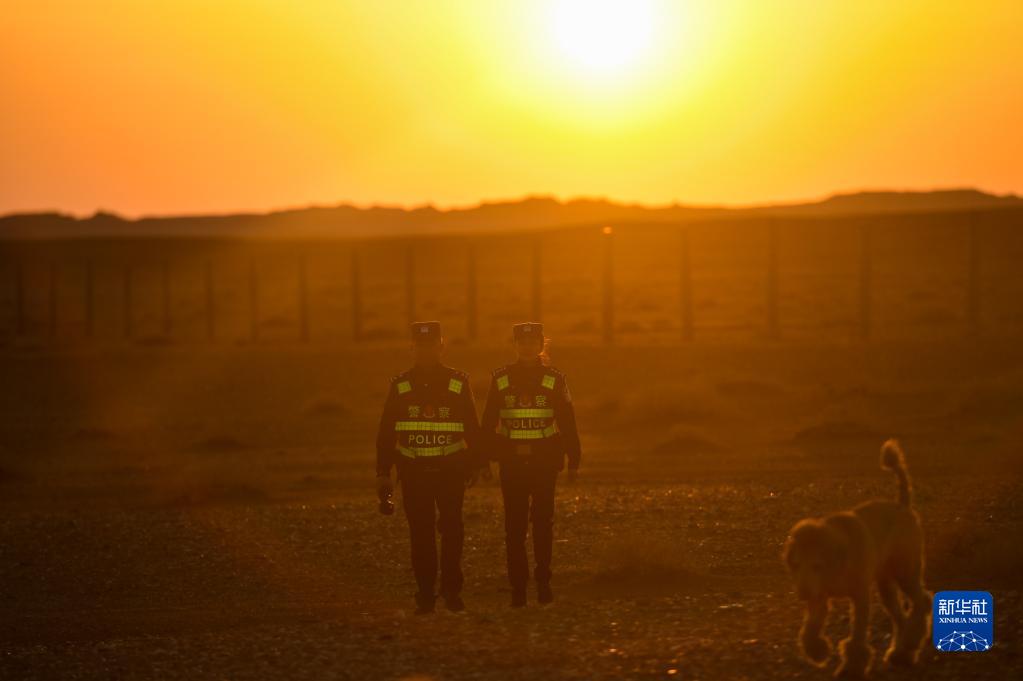 內蒙古阿拉善邊境管理支隊銀根邊境派出所戍邊夫妻警務室的徐乃超和李文娜在邊境線附近巡邏(2022年4月18日攝)。新華社記者 彭源 攝