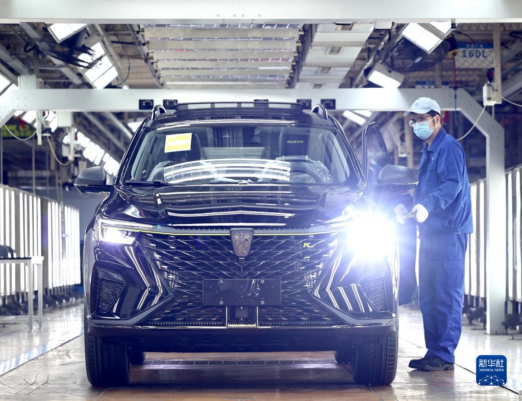 4月23日,上汽臨港乘用車工廠工人在總裝車間工作。新華社記者 陳建力 攝