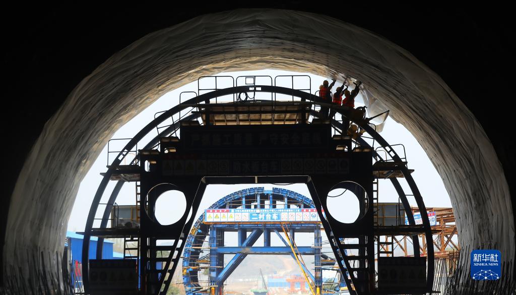 中鐵九局工程技術人員在撫順市蘭山隧道內(nèi)施工,沈白高鐵全線掀起施工大干熱潮(4月20日攝)。新華社記者 楊青 攝