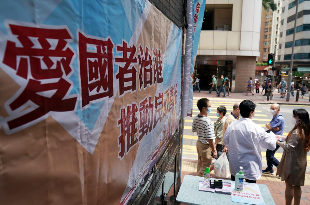 2021年9月21日,香港街頭舉辦“落實(shí)愛國(guó)者治港 推動(dòng)良政善治”街站宣傳活動(dòng)。 新華社記者 李鋼 攝