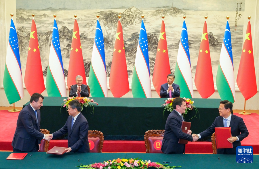 ??會(huì)談后,兩國(guó)元首簽署并發(fā)表了《中華人民共和國(guó)和烏茲別克斯坦共和國(guó)關(guān)于新時(shí)代全天候全面戰(zhàn)略伙伴關(guān)系的聯(lián)合聲明》,并共同見(jiàn)證簽署共建“一帶一路”、全球發(fā)展倡議、經(jīng)濟(jì)技術(shù)合作、互聯(lián)互通、環(huán)境保護(hù)、新能源、科技、人文、農(nóng)產(chǎn)品準(zhǔn)入、地方等領(lǐng)域一系列合作文件。