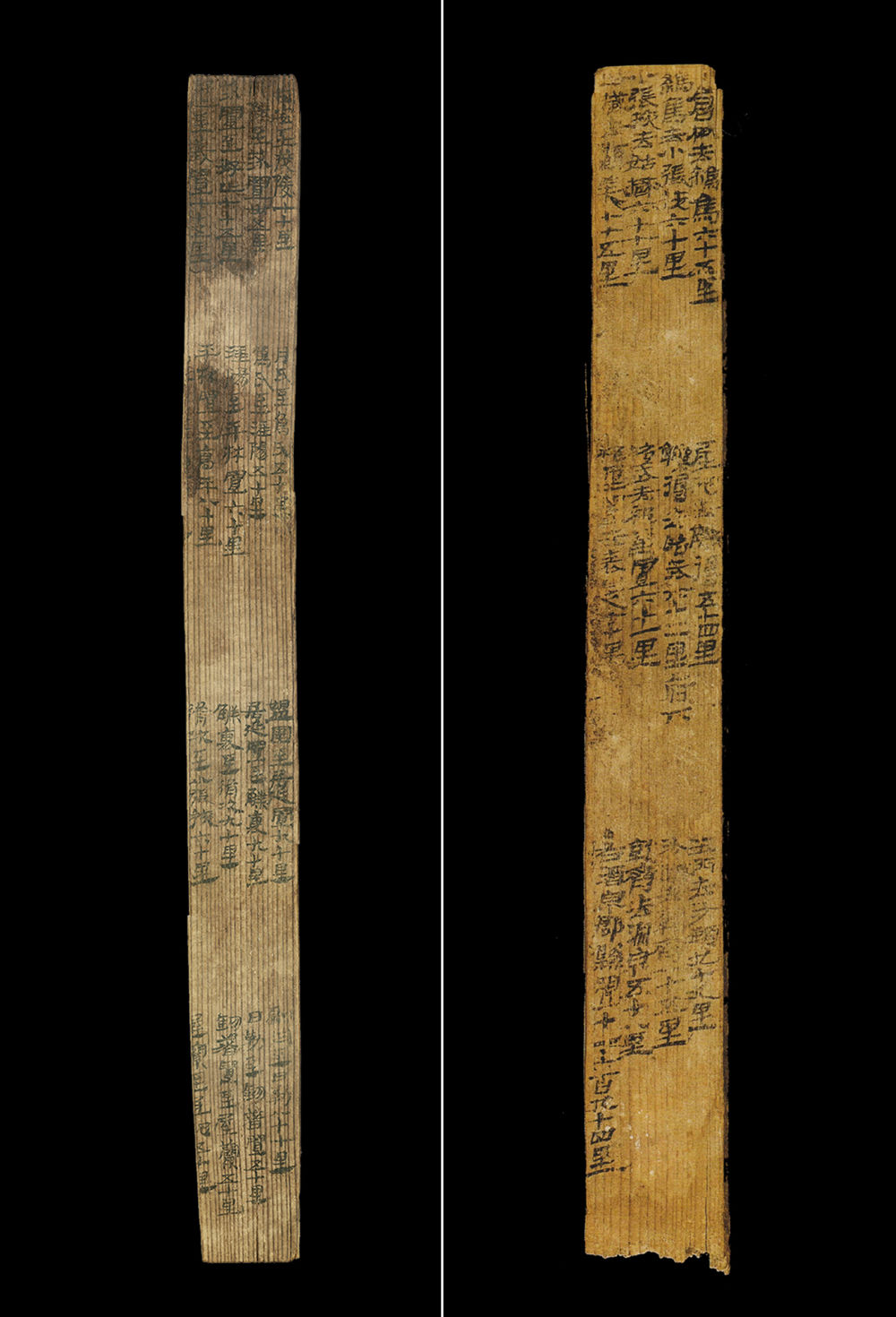 拼版照片:漢簡(jiǎn)《居延里程簡(jiǎn)》(左圖)和《懸泉里程簡(jiǎn)》。1974年出土于今內(nèi)蒙古自治區(qū)額濟(jì)納旗破城子遺址的“居延里程簡(jiǎn)”,詳細(xì)記載了從漢代長(zhǎng)安出發(fā)至張掖郡20個(gè)驛置名稱(chēng)及間隔里程。1990年出土于敦煌懸泉置遺址的“懸泉里程簡(jiǎn)”,記載了河西走廊地區(qū)武威郡到敦煌郡12個(gè)驛置的詳細(xì)信息。新華社發(fā)(甘肅簡(jiǎn)牘博物館供圖)