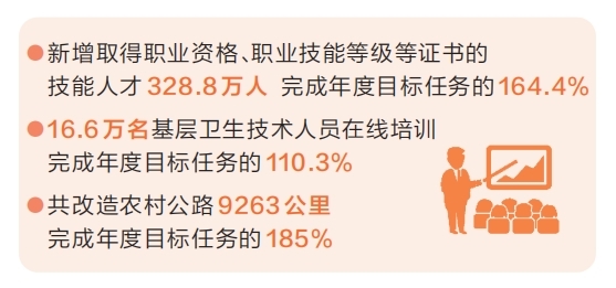 開展職業(yè)技能培訓(xùn)和評價(jià)取證。2023年,全省累計(jì)開展職業(yè)技能培訓(xùn)428.7萬人次,新增取得職業(yè)資格、職業(yè)技能等級等證書的技能人才328.8萬人,高技能人才124.8萬人,分別完成年度目標(biāo)任務(wù)的142.9%、164.4%、155.9%。