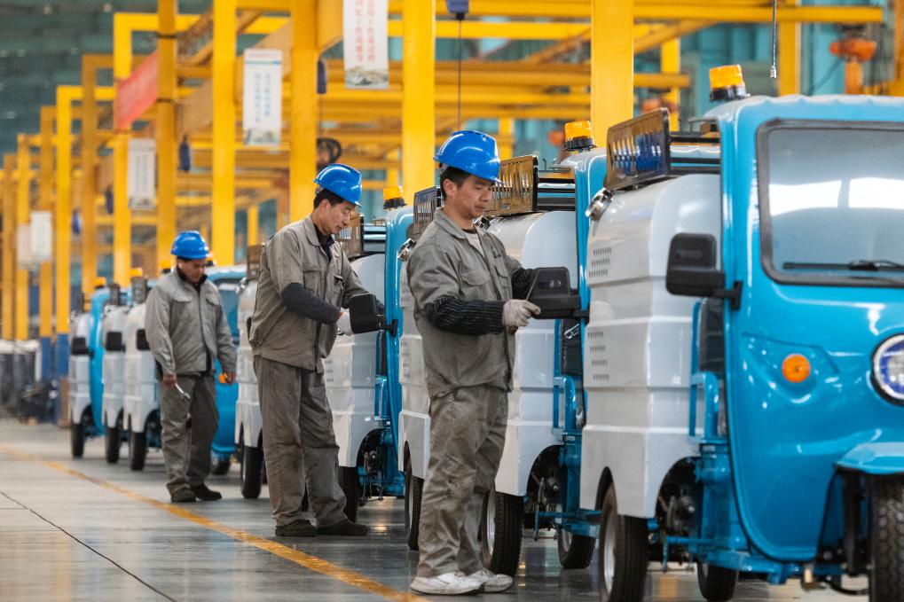 ?? 2月17日,在安徽省蕪湖市繁昌經(jīng)濟開發(fā)區(qū)愛瑞特新能源專用汽車生產(chǎn)車間里,工人組裝新能源電動清掃車。新華社發(fā)(肖本祥 攝)