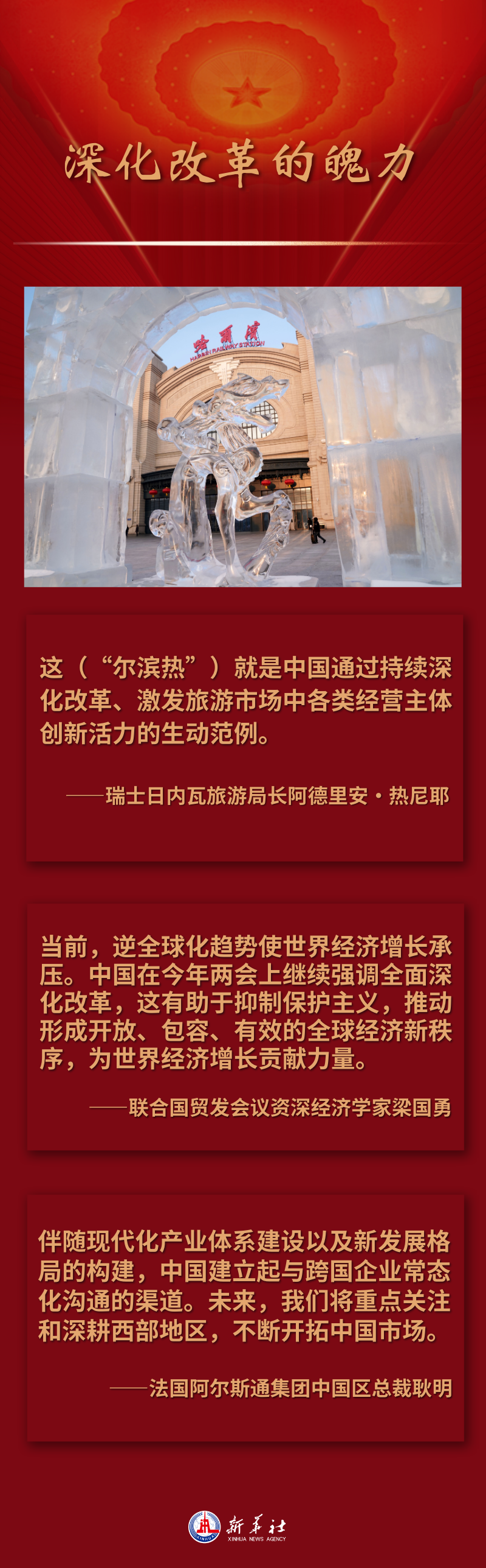 ??今年年初,“爾濱熱”火出國門,引來歐洲冰雪勝地瑞士旅游部門的“隔空互動(dòng)”。瑞士日內(nèi)瓦旅游局長阿德里安·熱尼耶說,這就是中國通過持續(xù)深化改革、激發(fā)旅游市場中各類經(jīng)營主體創(chuàng)新活力的生動(dòng)范例?!拔液芘宸枮I,政府能與整個(gè)市場一同努力挖掘冰雪旅游資源、改革完善相關(guān)機(jī)制,讓冬季活動(dòng)變得如此多彩!”