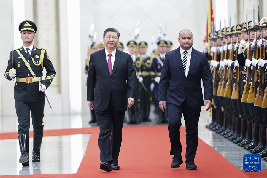 ??3月25日下午,國(guó)家主席習(xí)近平在北京人民大會(huì)堂同來華進(jìn)行國(guó)事訪問的瑙魯總統(tǒng)阿迪昂舉行會(huì)談。這是會(huì)談前,習(xí)近平在人民大會(huì)堂北大廳為阿迪昂舉行歡迎儀式。新華社記者 翟健嵐 攝