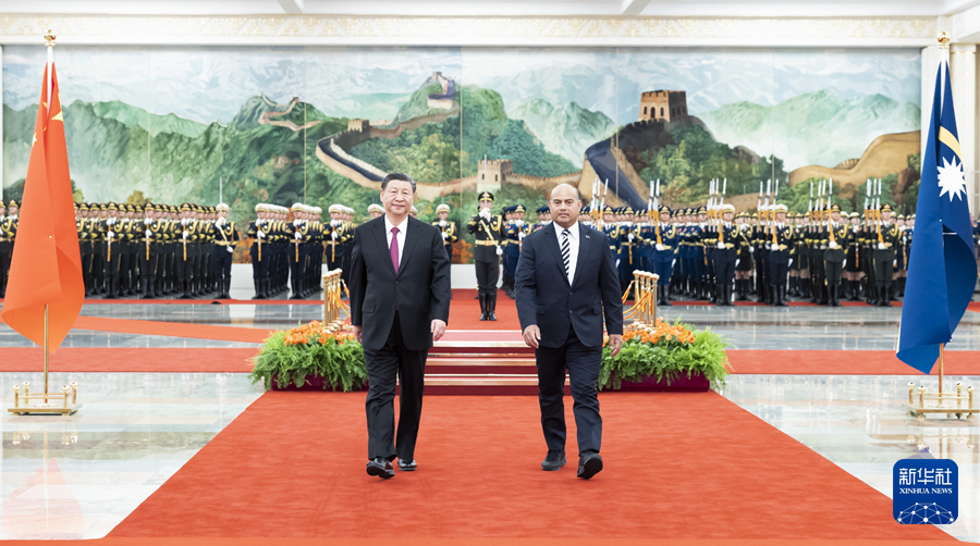 ??習(xí)近平指出,今年1月,瑙魯作出堅(jiān)持一個(gè)中國(guó)原則、同中國(guó)復(fù)交的政治決斷,這是符合歷史大勢(shì)、順應(yīng)時(shí)代潮流之舉。友好不分先后,只要開啟,就會(huì)有光明前途。合作不論大小,只要真誠(chéng),就會(huì)有豐碩成果。中瑙關(guān)系已經(jīng)翻開新的歷史篇章。中方愿同瑙方一道,開創(chuàng)中瑙關(guān)系的美好未來,更好造福兩國(guó)人民。