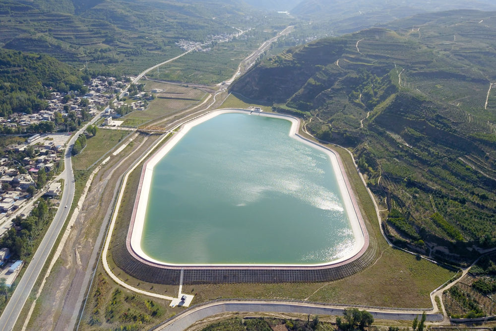 ??這是2021年9月8日在甘肅省天水市拍攝的引洮供水工程楊家灣調蓄水池(無人機照片)。新華社記者 范培珅 攝
