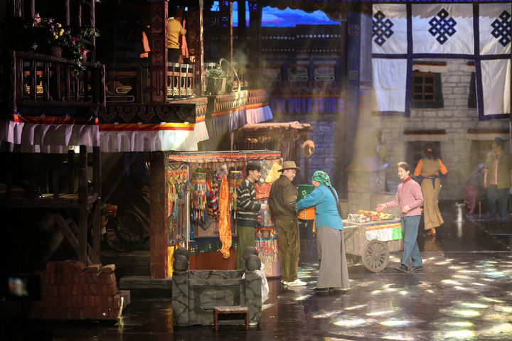 ??2022年3月23日,話(huà)劇《八廓街北院》在西藏自治區(qū)藏戲演藝中心上演。該劇由西藏自治區(qū)話(huà)劇團(tuán)創(chuàng)作演出,以拉薩八廓街為背景,展現(xiàn)了一座多民族聚居院落的鄰里深情。新華社記者 姜帆 攝